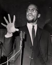 The man in the black and white photograph is looking to his right. The camera is positioned slightly below him, a position that emphasizes his stature. Caught in mid-speech, mid-sentence, mid-thought, he is intent on what he is saying. His gaze is focused; his right hand extended, the long fingers spread wide. The seriousness in his face is punctuated by his narrow tie, suit, glasses. His trimmed goatee is a new addition from his pilgrimage to Mecca.