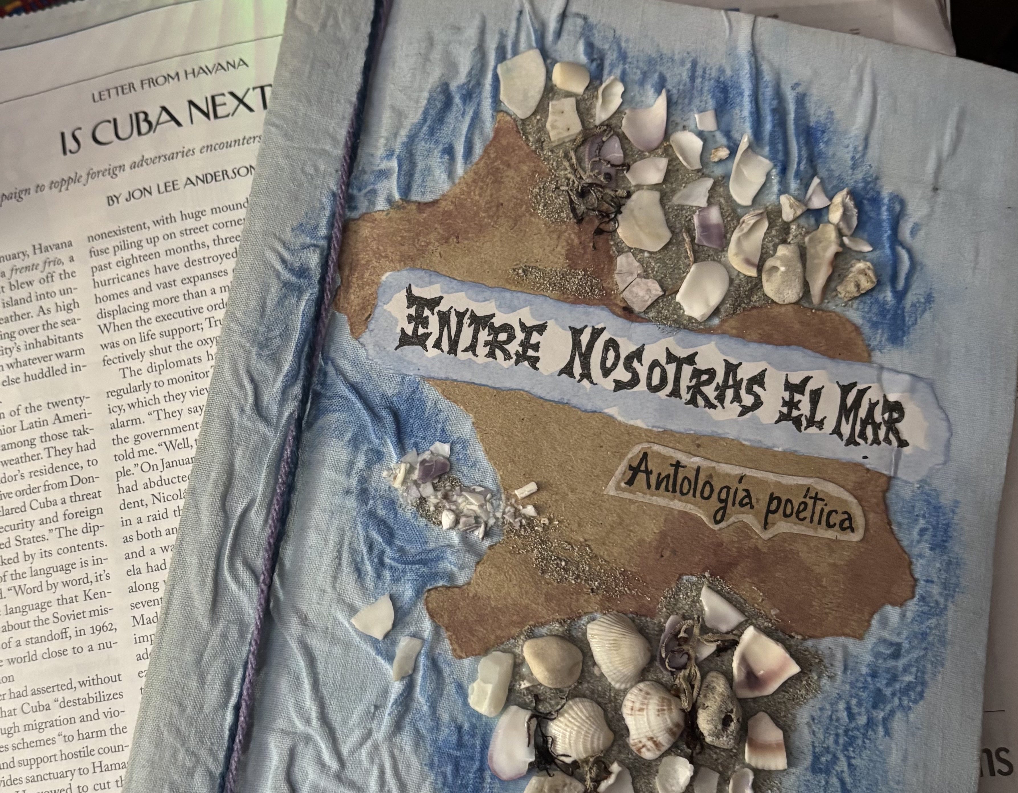Beside me, I have an anthology of poetry, published by Ediciones Vigia, and entitled Entre Nosotras El Mar (Between Us the Sea).